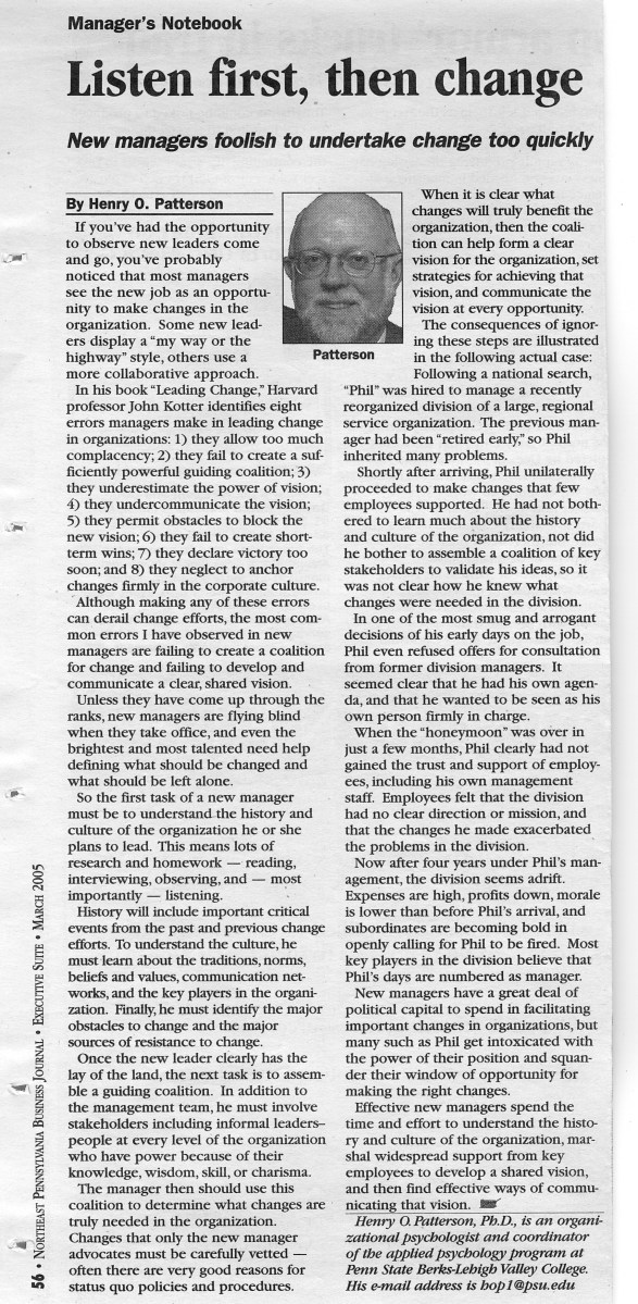 Home » Psychology in the Workplace: NEPA Business Journal Articles » # 15 – Mar 05 – Listen first, then change