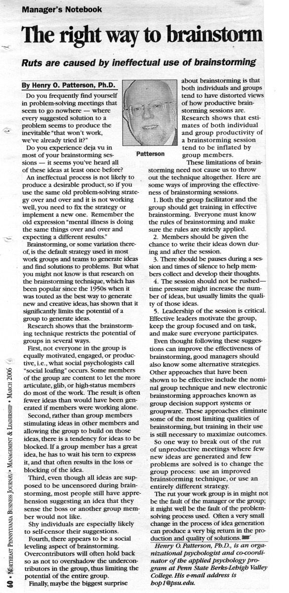 Home » Psychology in the Workplace: NEPA Business Journal Articles » # 21 – Mar 06 – The right way to brainstorm