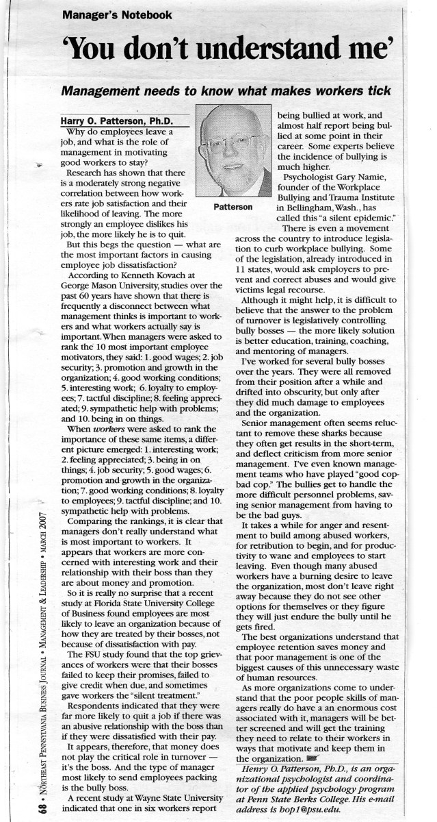Home » Psychology in the Workplace: NEPA Business Journal Articles » # 27 – Mar 07 – ‘You don’t understand me’