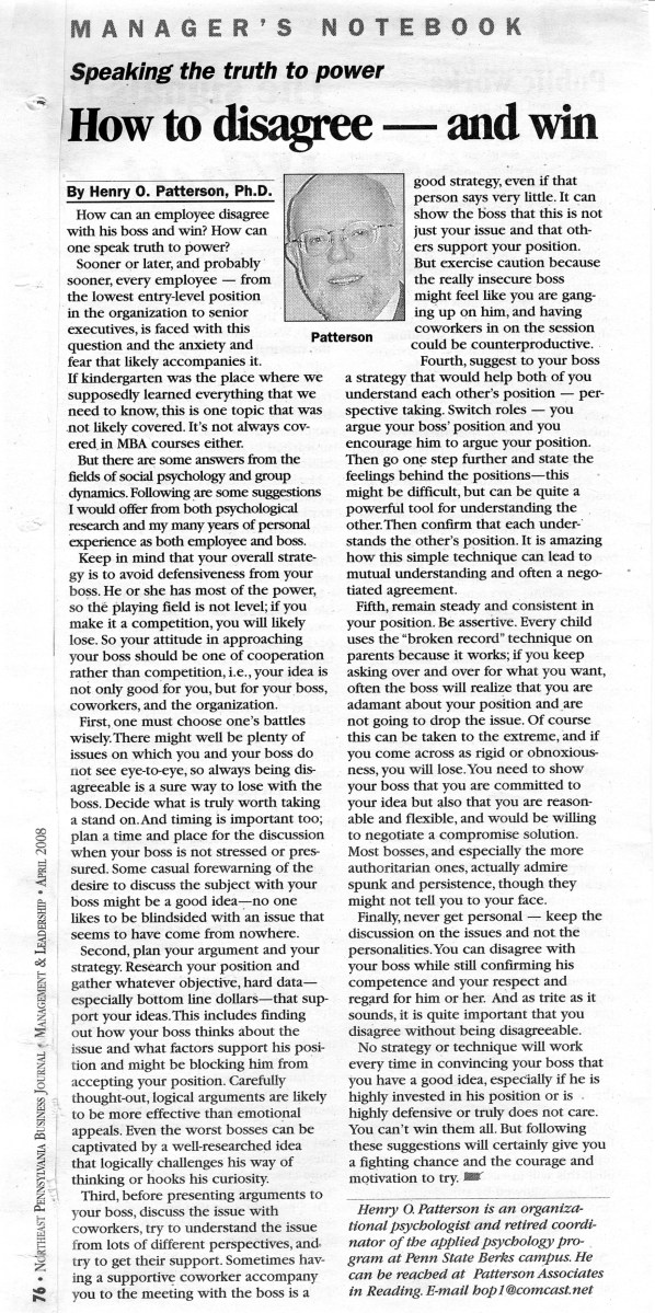 Home » Psychology in the Workplace: NEPA Business Journal Articles » # 33 – April 08 – How to disagree–and win