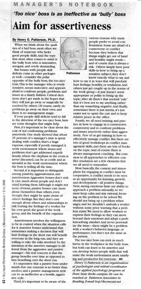 Home » Psychology in the Workplace: NEPA Business Journal Articles » # 34 – June 08 – Aim for assertiveness