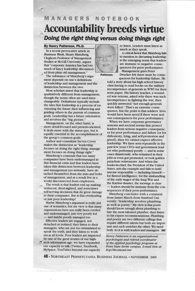 Home » Psychology in the Workplace: NEPA Business Journal Articles » # 41 – Nov 09 – Accountability breeds virtue
