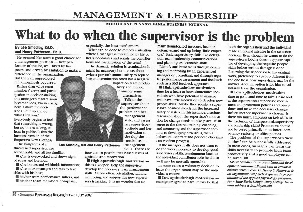 Home » Psychology in the Workplace: NEPA Business Journal Articles » # 6A – July 02 – What to do when the supervisor is the problem